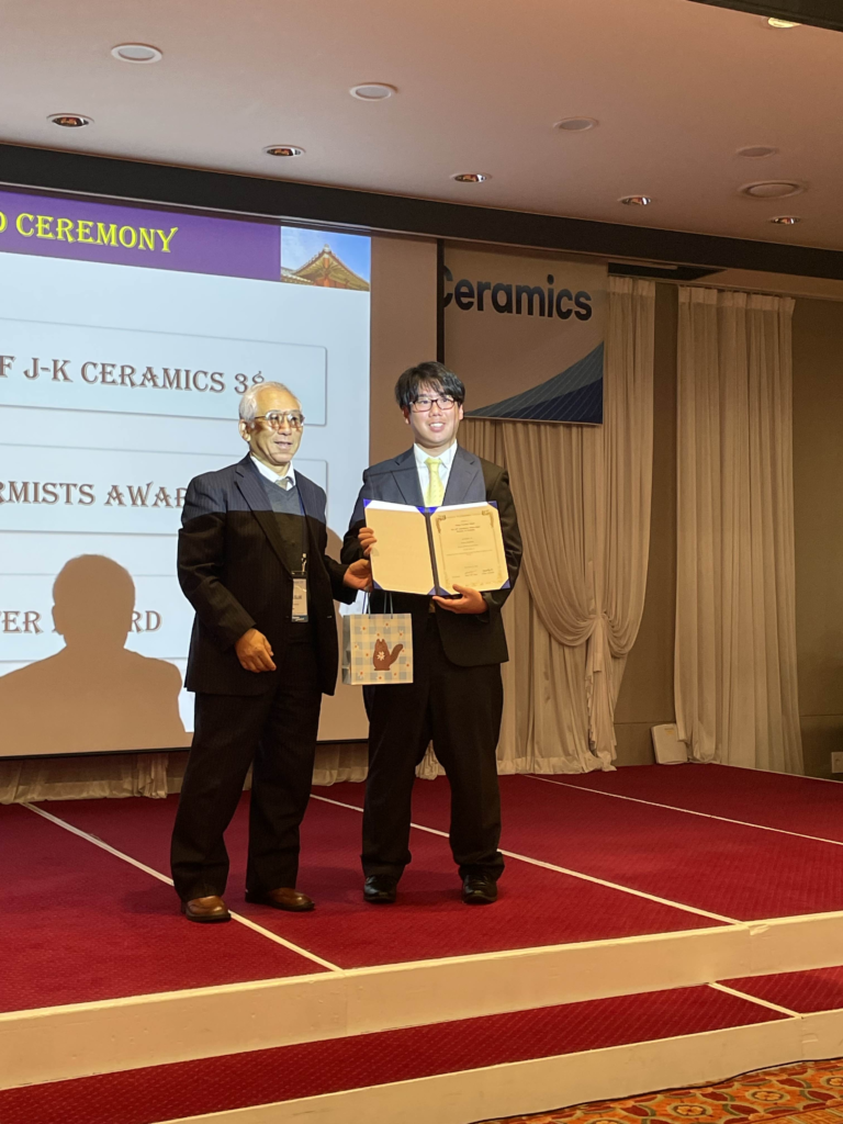 岡西くんがYoung Ceramist Awardを受賞しました。おめでとうございます。