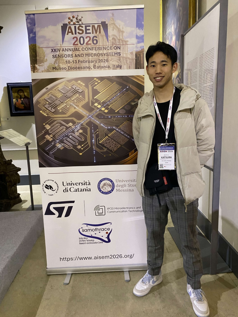 NewsResearch The AISEM 2026 XXIV Conference 02/13/2026 高塚和夏 2026年2月10-13日にイタリア(Catania)で開催されたAISEM 2026で、当研究室の桂くん(D1)が口頭発表しました。